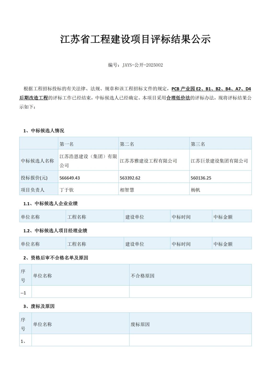 江蘇省工程建設(shè)項目評標(biāo)結(jié)果公示