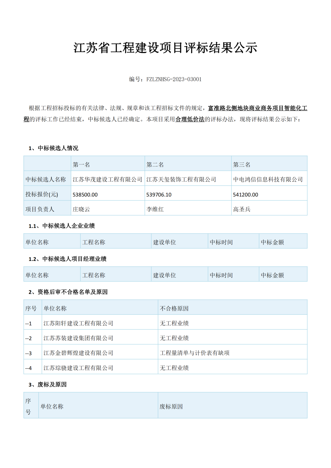 江蘇省工程建設(shè)項(xiàng)目評(píng)標(biāo)結(jié)果公示